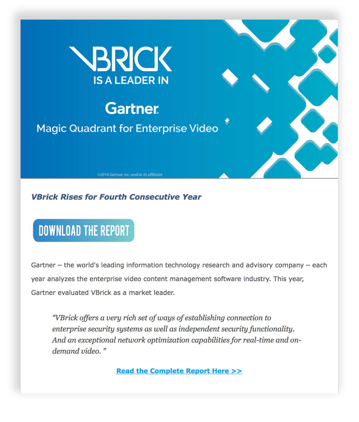 Impact: Boosted social media presence and raised awareness of VBrick’s products and industry leadership.