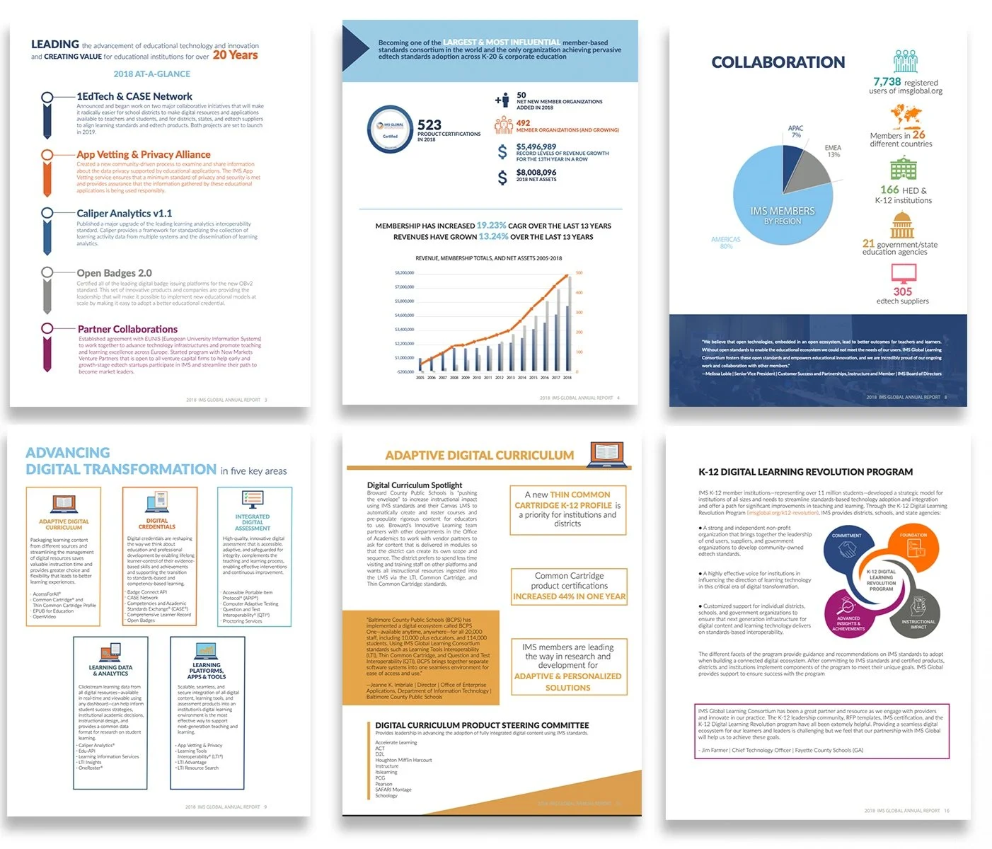 Solution: Created visually engaging reports with IMS Global’s branding, data visualizations, and interactive elements.
