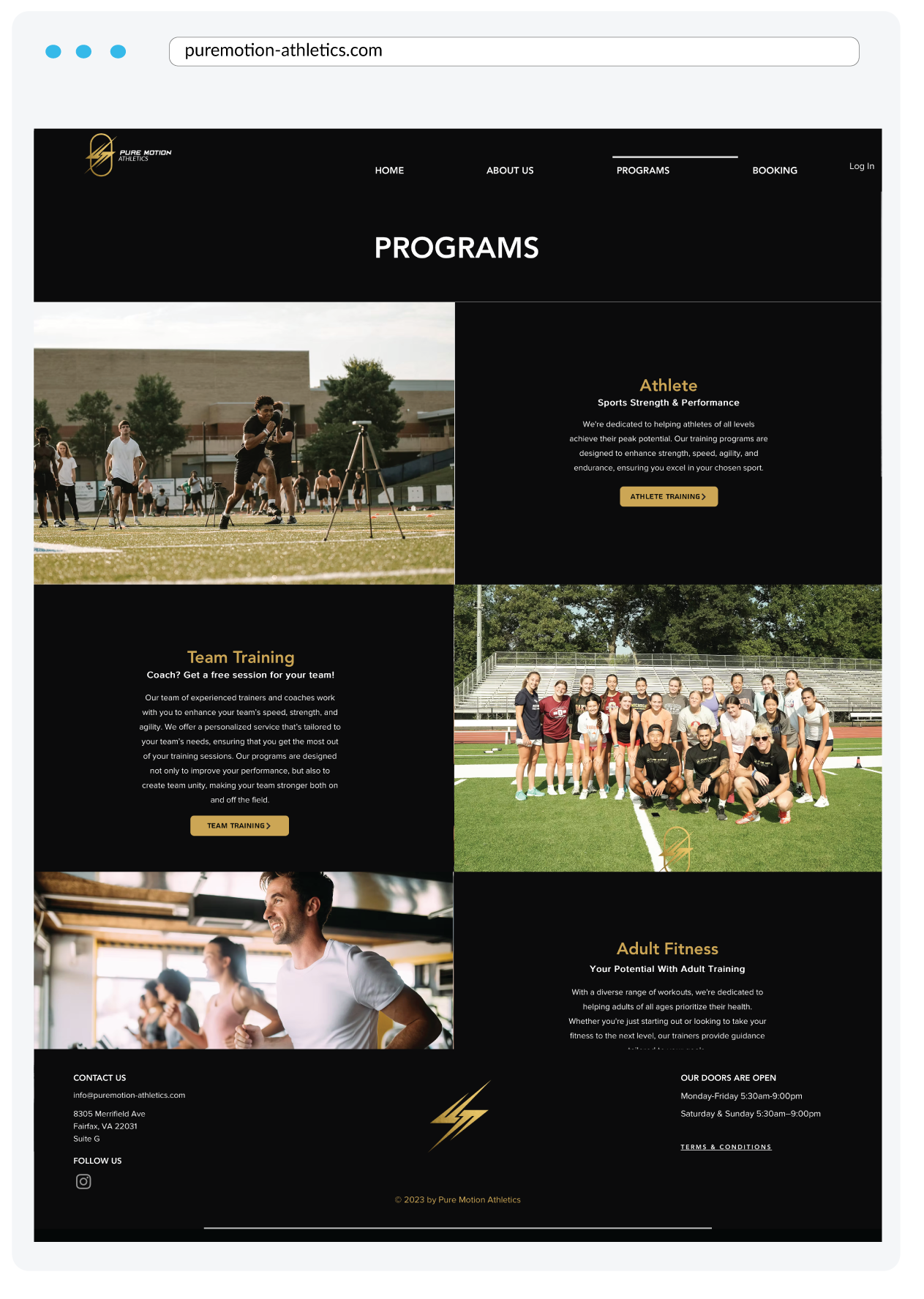 The first step was to create a visual identity that captured the essence of Pure Motion Athletics: energy, power, and precision.